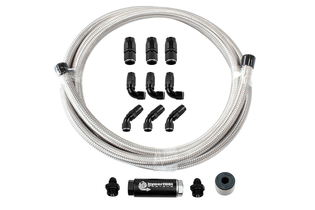 87201 - 20' Stainless Steel Hose Kit w/ Fuel Filter and full flow fittings - Hyperfuel