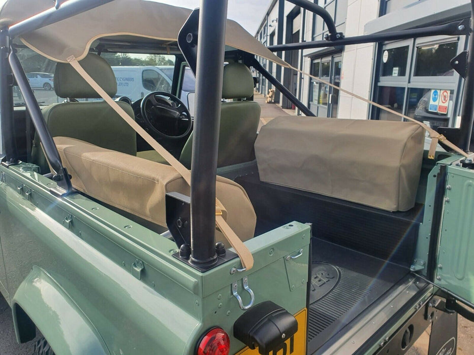 Supplied with full Canvas roof and additional Bikini roof - Perfect for the summer months, this back-to-basics roof covers just the front seats, supplied with a roof material canvas bag to stow ether the bikini or full hood behind the front seats when not in use for tidy and clean storage. Accompanying this is a pair of bespoke canvas coverings for the rear seats when not in use.
