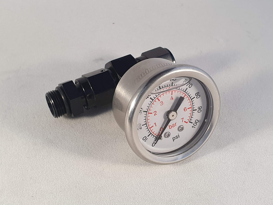 0-100 PSi Fuel Pressure Gauge with the correct fittings to screw straight in to the front of your FiTech Throttle Body!
